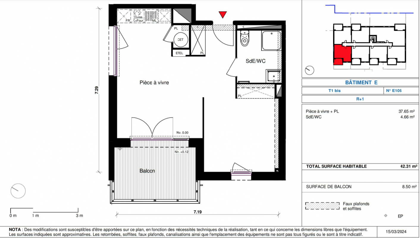 201 700€ Appt. Studio 42.32m2 1er