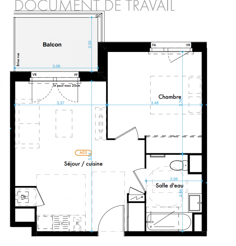 263 000€ Appt. T2 46.13m2 3ème