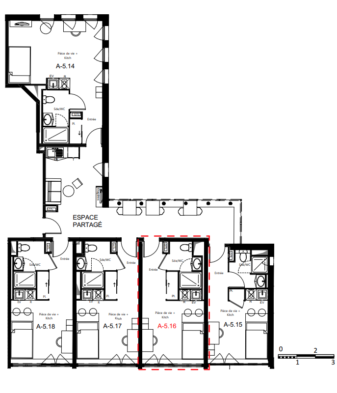Composée de 112 unités d’hébergement, réparties dans 84 appartements du T1 au T10 (colocation pour 9 personnes), la résidence offre également des espaces communs chaleureux. À l’intérieur une salle de détente et une salle de fitness permettent aux étudiants de se retrouver et partager des moments de convivialité. À l’extérieur, les résidents pourront profiter de la terrasse commune et de se détendre autour d’une partie de pétanque ou de ping-pong.