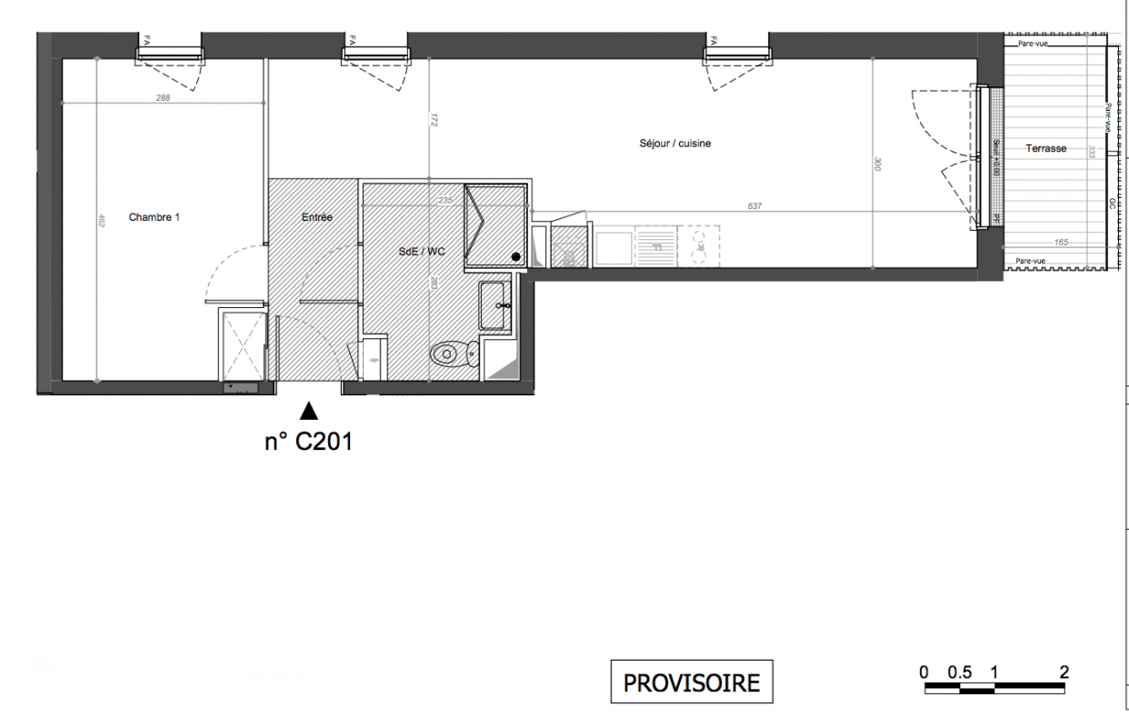 | Voir | Disponible | 193 100€ | C003 | Appt. | T2 | 41.7m2 | 0-RDC | Disponible | 193 100€ | Voir |