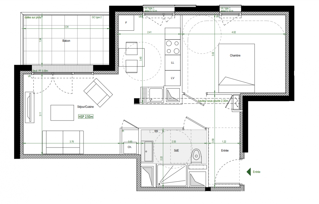 216 114€ Appt. - 41.6m2 0-RDC
