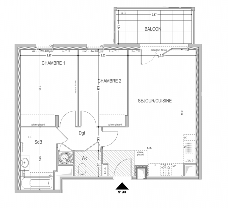 254 787€ Appt. T3 57.84m2 3ème