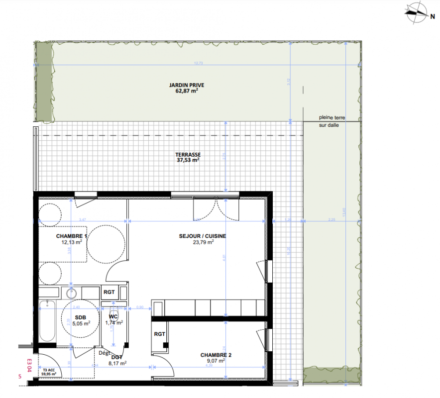 291 560€ Appt. T3 59.94m2 0-RDC